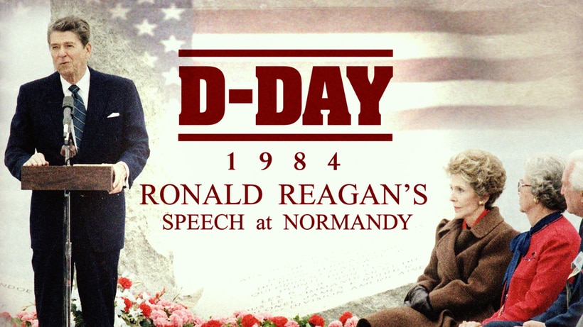Ronald Reagan delivers a speech to D-Day veterans and world leaders on the shores where Allied soldiers liberated Europe from Nazi Germany.